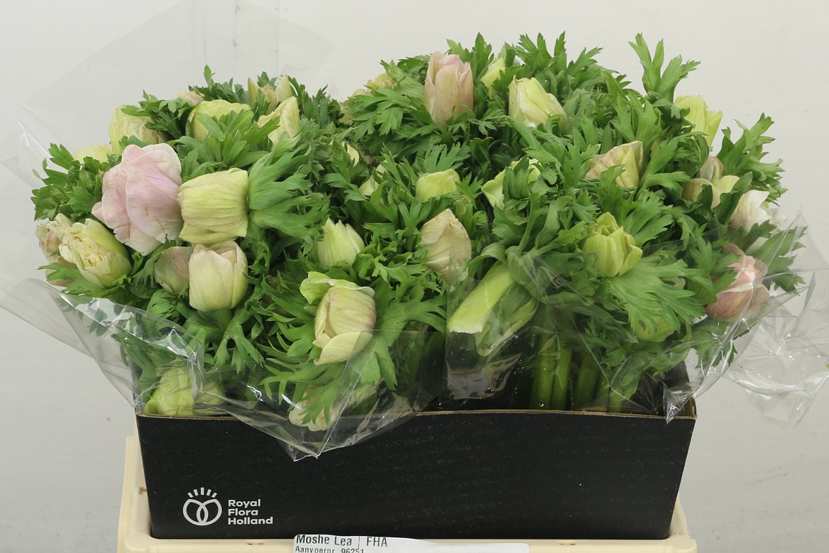 Colli 3 Steellengte(cm) 35 Inhoud 100 Gewicht (gr) 23 Aantal 300 Rijpheidsstadium 2 t/m 3 Fustcode 893 Bloemkleur Pastel Land van herkomst IL Kwaliteit A1 Kweker Moshe Lea £ -,-≥ 50 stks £ -,-Anem Co Galil Pastel